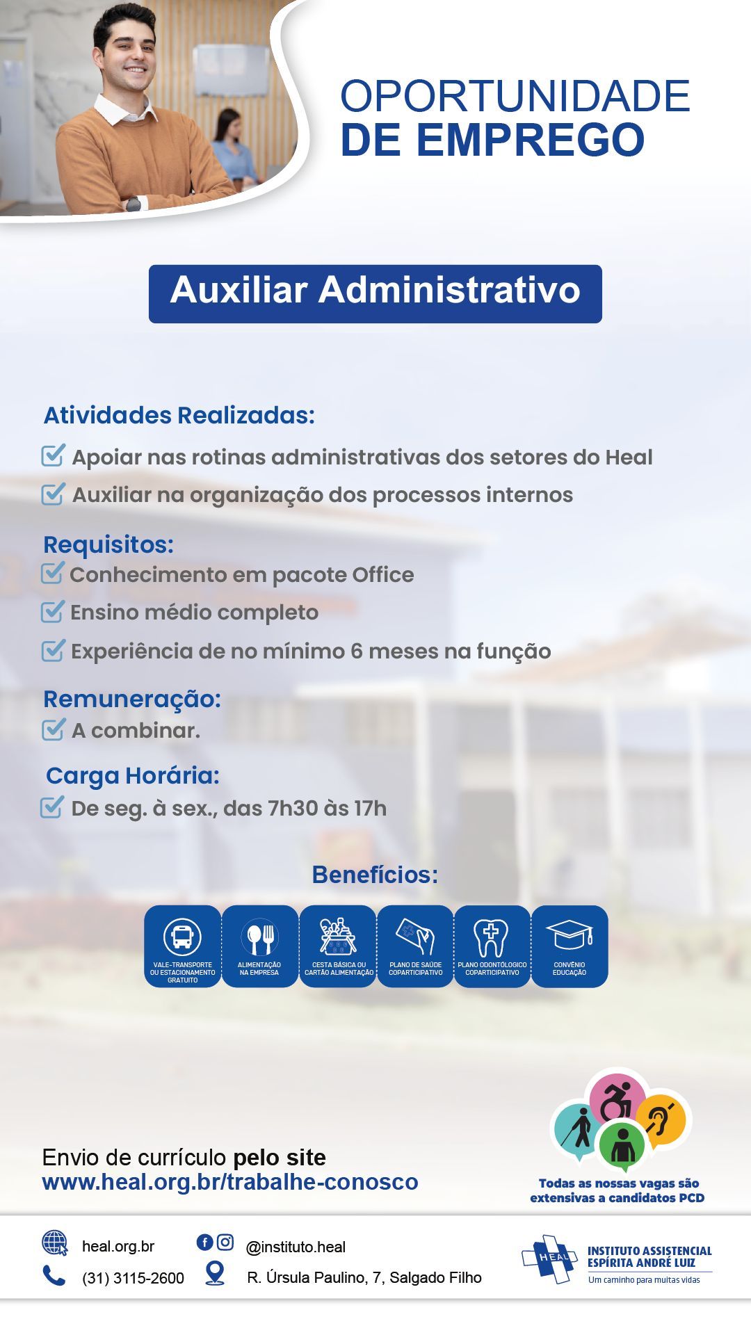 Atividades: Apoiar nas rotinas administrativas dos setores do Heal; auxiliar na organização dos processos internos.