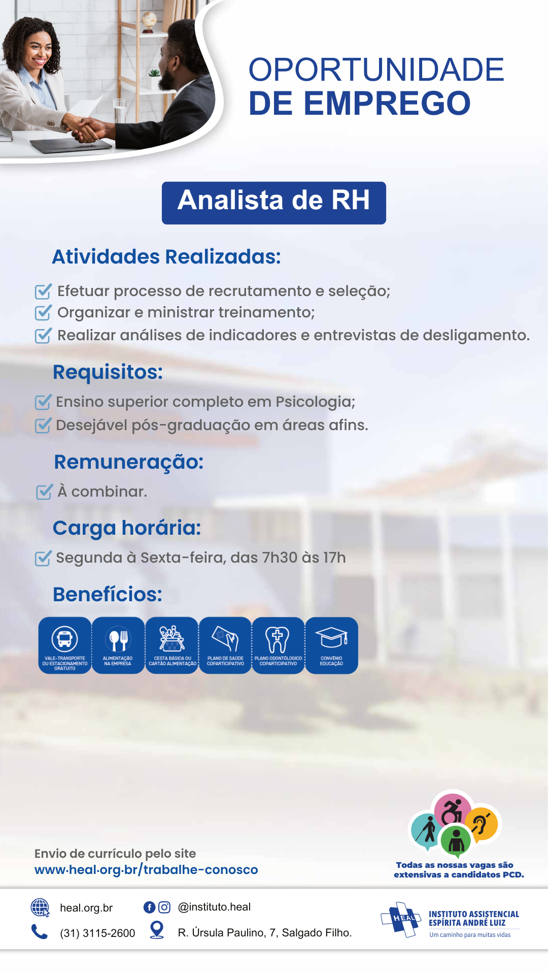 Atividades: Efetuar processo de recrutamento e seleção; Organizar e ministrar treinamento; Realizar análises de indicadores e entrevistas de desligamento.