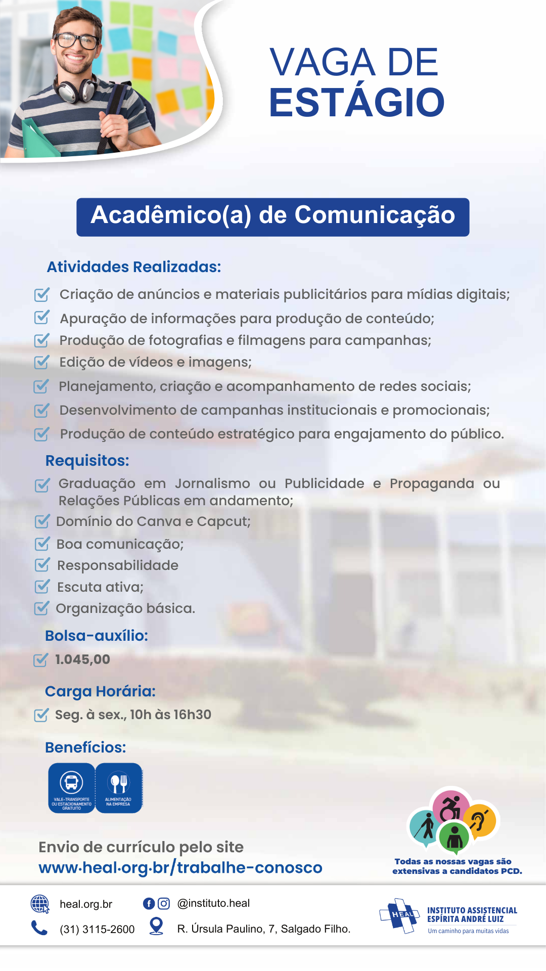 Requisitos: Graduação em Jornalismo ou Publicidade e Propaganda ou Relações Públicas em andamento;